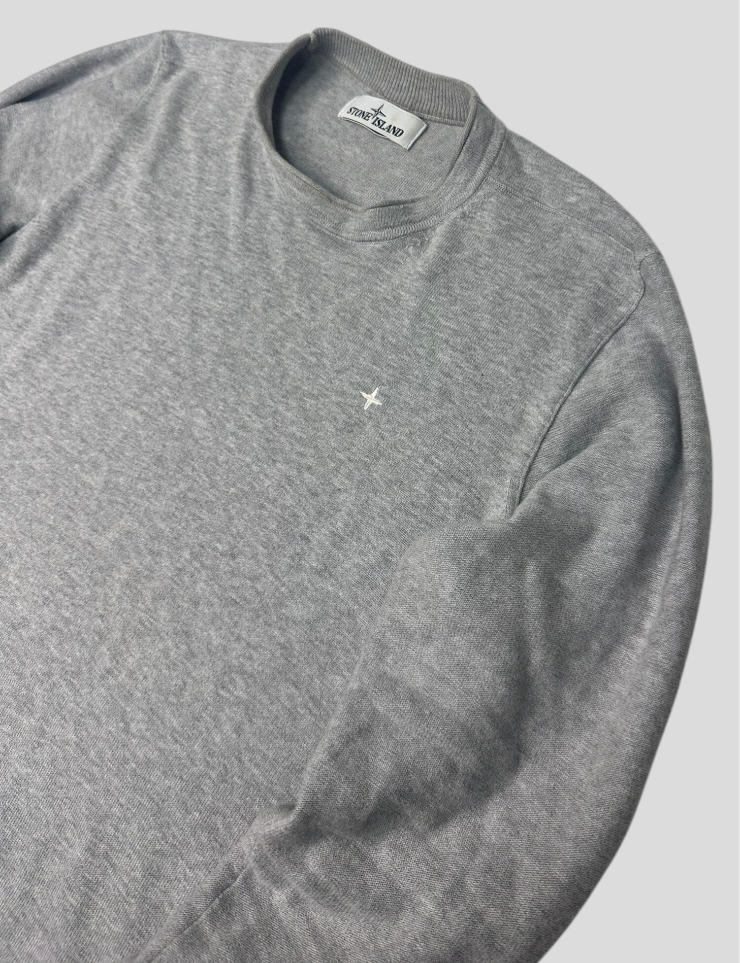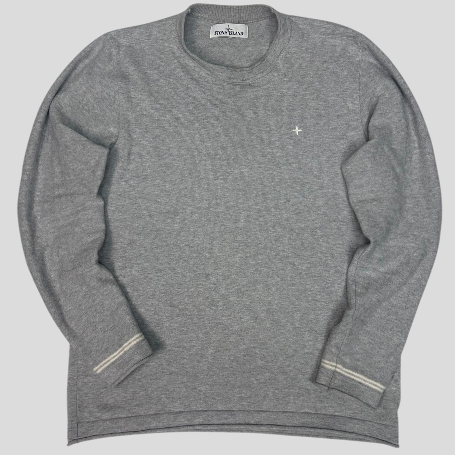 Stone Island Sweater Cotton Grey Star Embroidery & Marina Striping